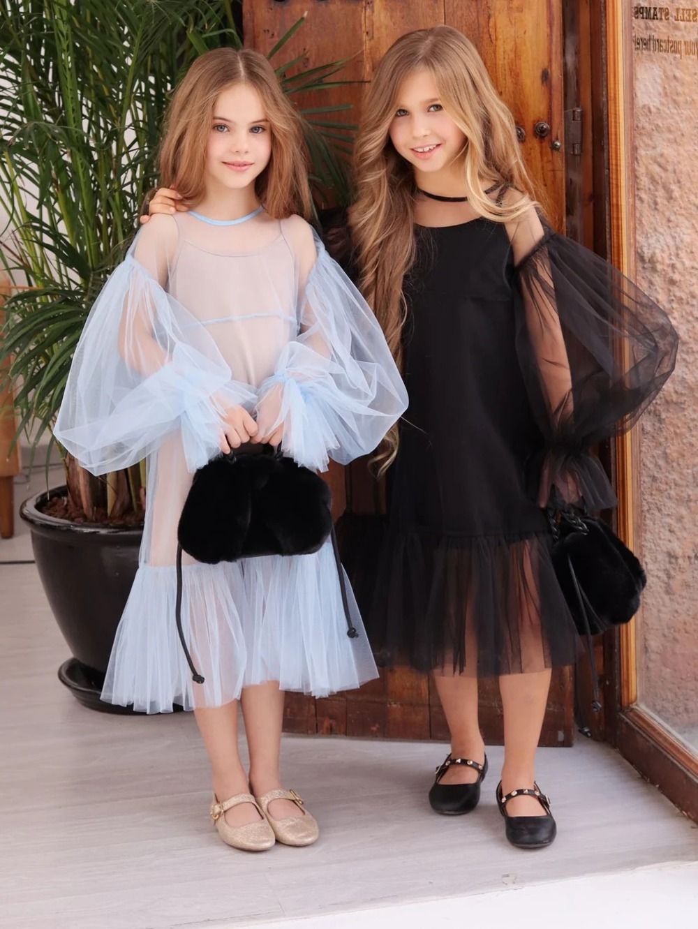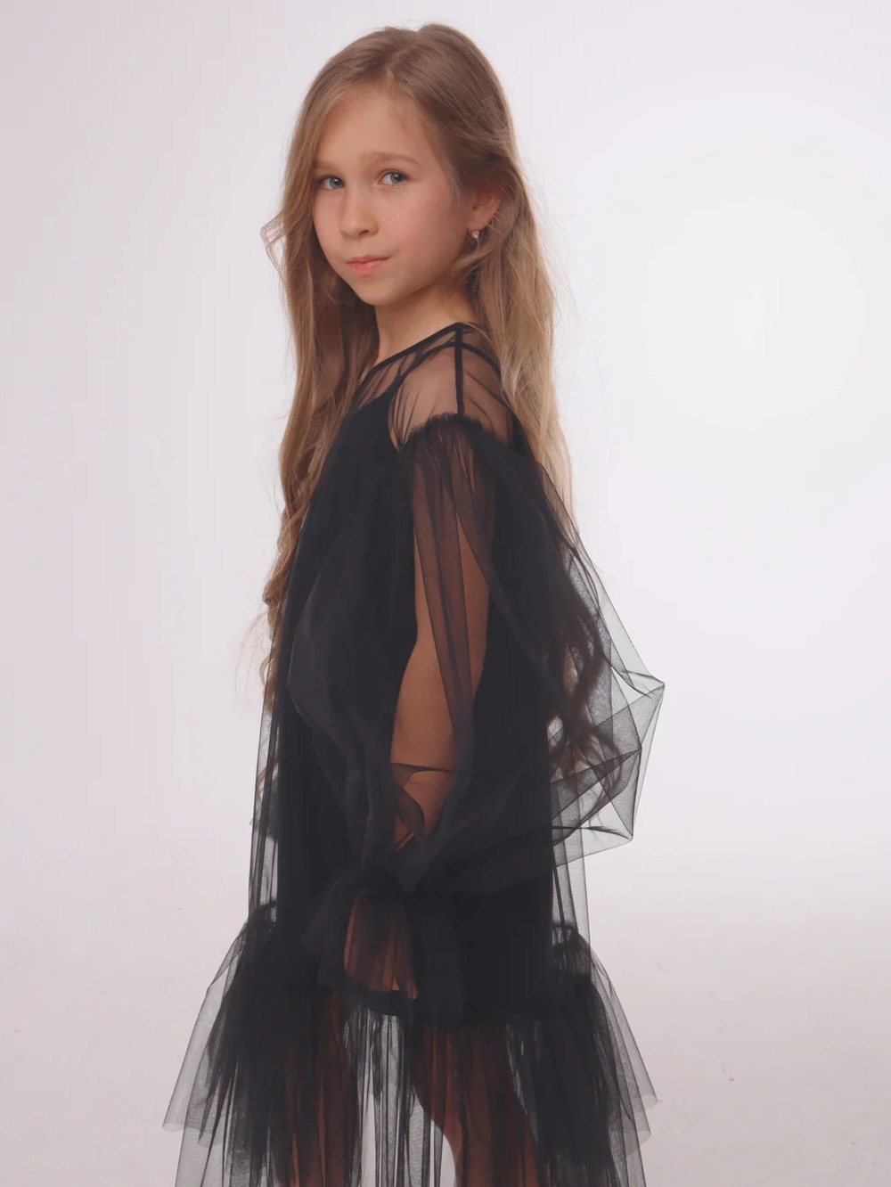 НОВИНКА Нарядное платье для девочки. Нижнее платье на бретелях, верхнее платье из мягкой сетки с рукавами-буфами Бренд: KATEE’S KIDS Состав: верх 1 100% полиэстр, верх 2 92% хлопок 8% пэ Цвет: Черный